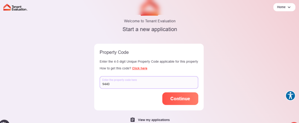 In the next screen, enter property code 9440 and hit Continue.