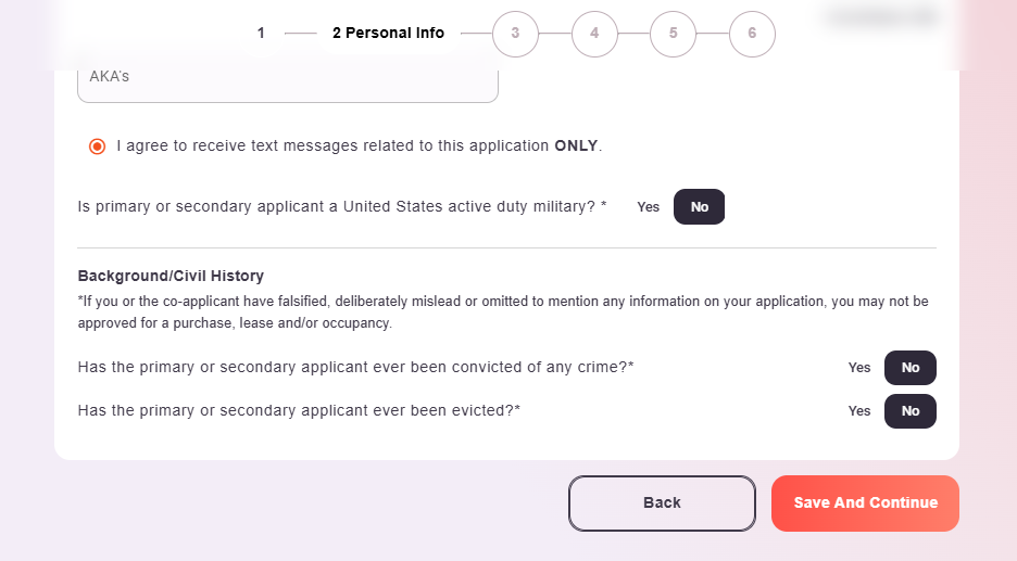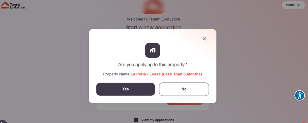 Then, click on Yes to the question "Are you applying to this property?