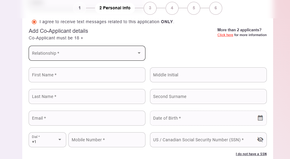 Then add your coapplicant's information. Then click on "Save and Continue"