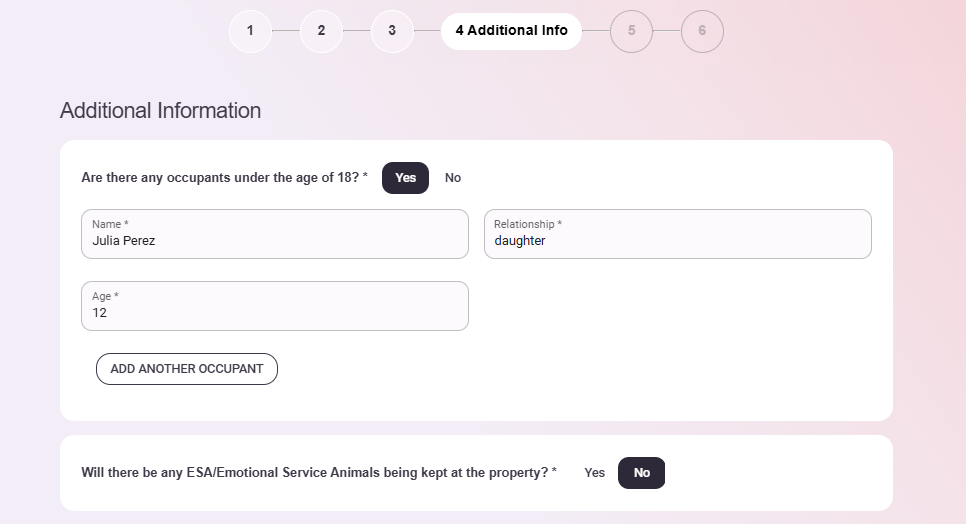 If there any occupants under 18, please fill our their information, as follows: