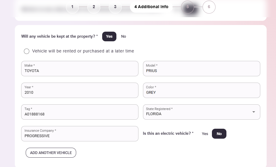 If you're bringing your car please fill out the following information, if it's a rental car you can choose the option "Vehicle will be rented or purchased at a later time":