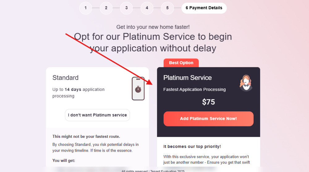 If your check-in date is less than 14 days away please choose the Platinum Service in the next screen, as follows: